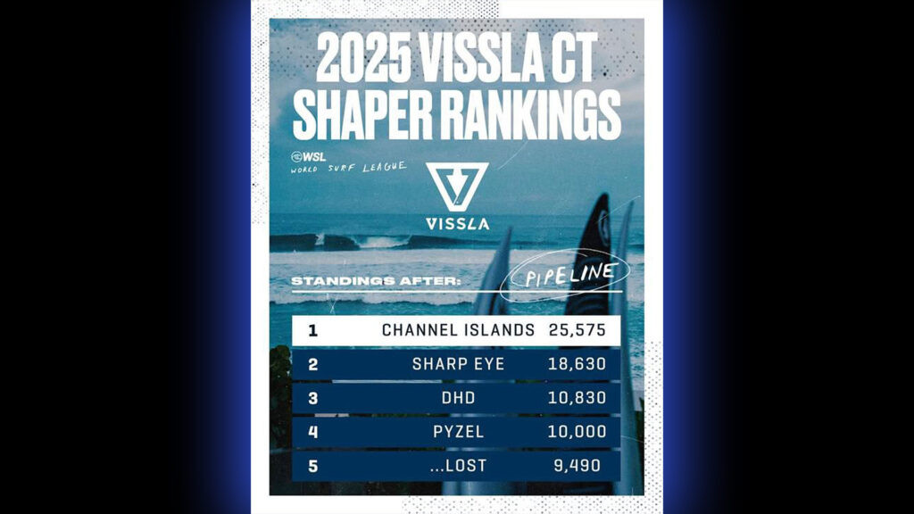 Com a vitória do havaiano, a Channel Islands Surfboards também largou na frente, com 25.575 pontos no ranking dos shapers do CT 2025.