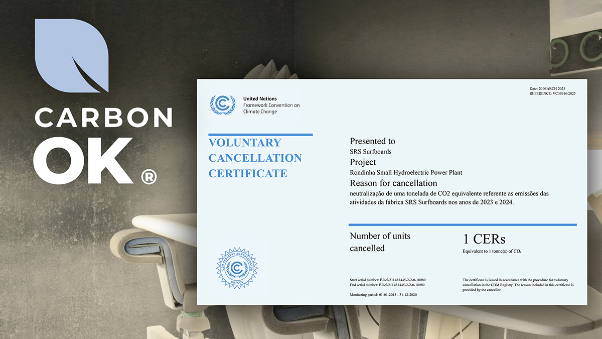 SRS Surfboards Conquista Certificado Carbon Ok neutralizando as emissões de carbono